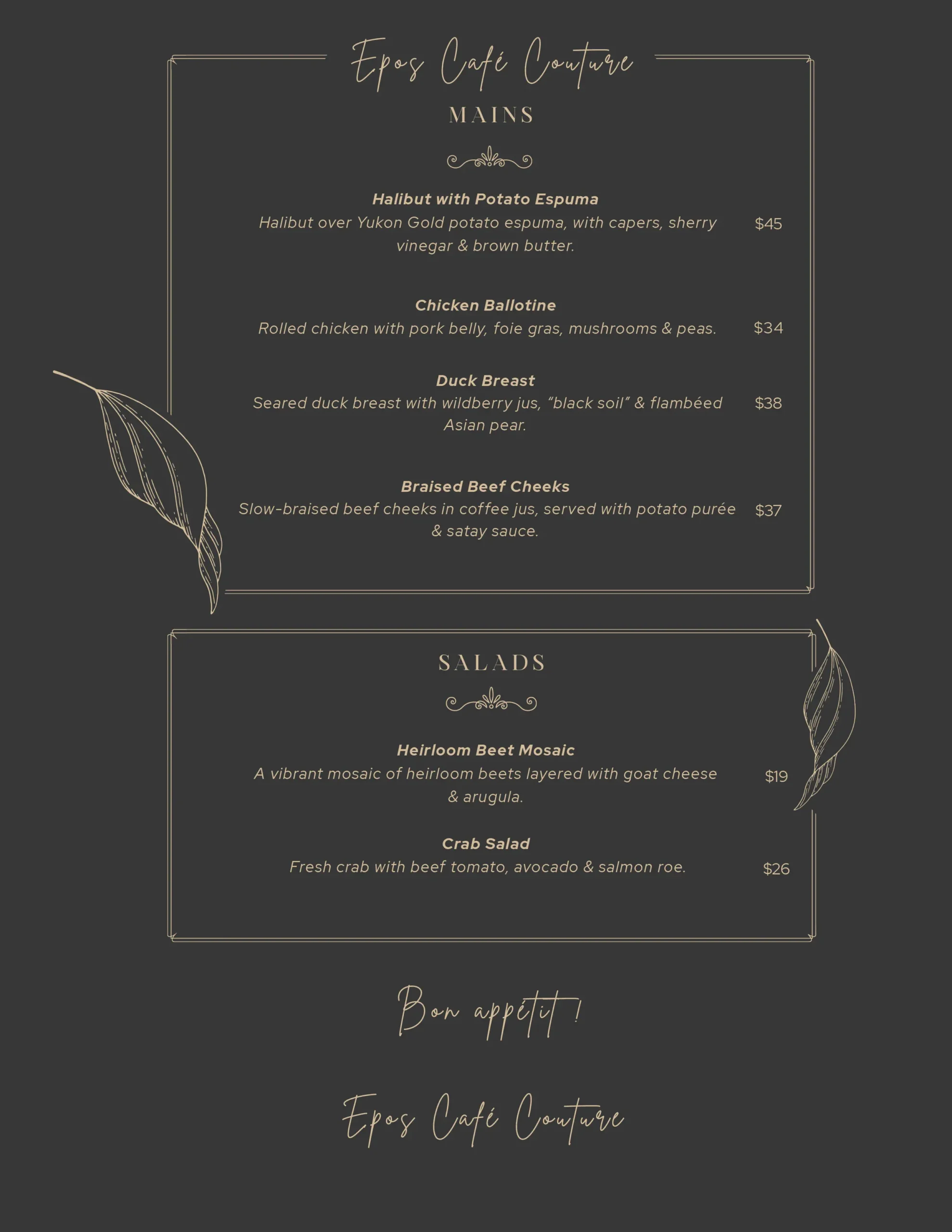 Epos Café Couture takes brunch to another level. Beautifully plated dishes, attentive service, and a perfect location.
